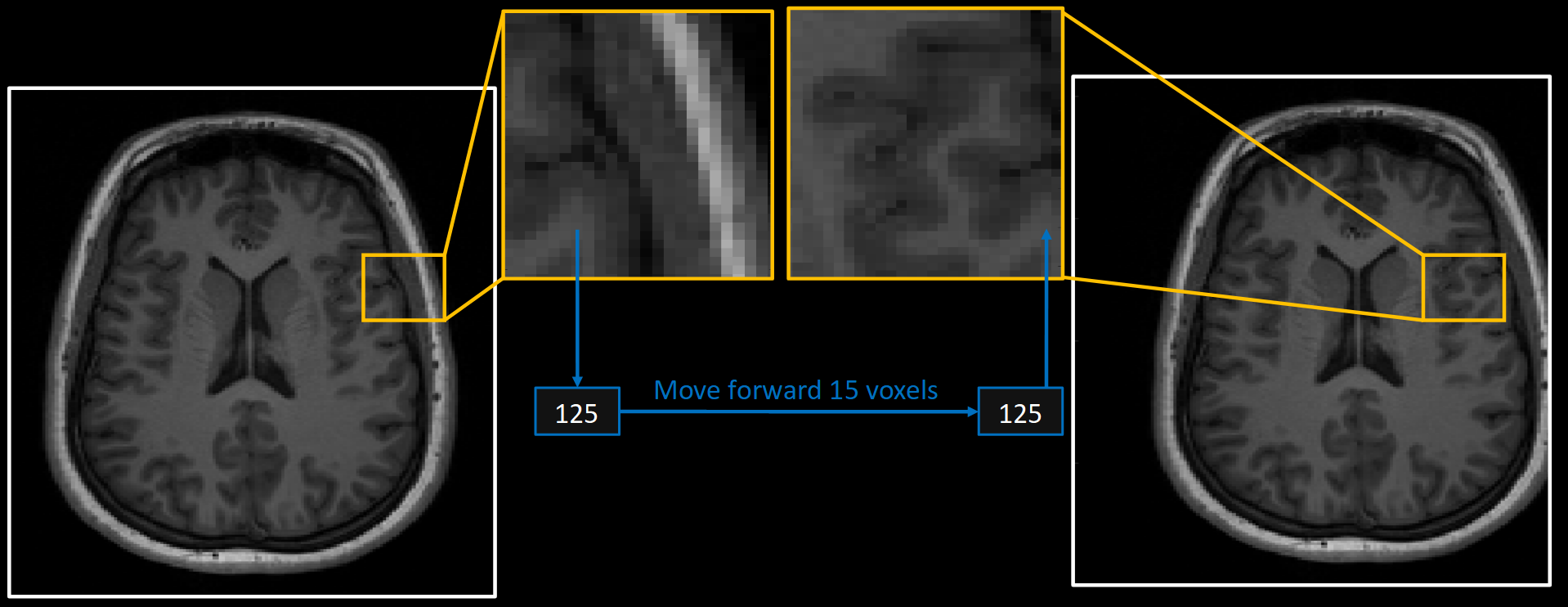 Fig. 2 Example of moving each voxel value to shift the location of the brain relative to the bounds of the image.#