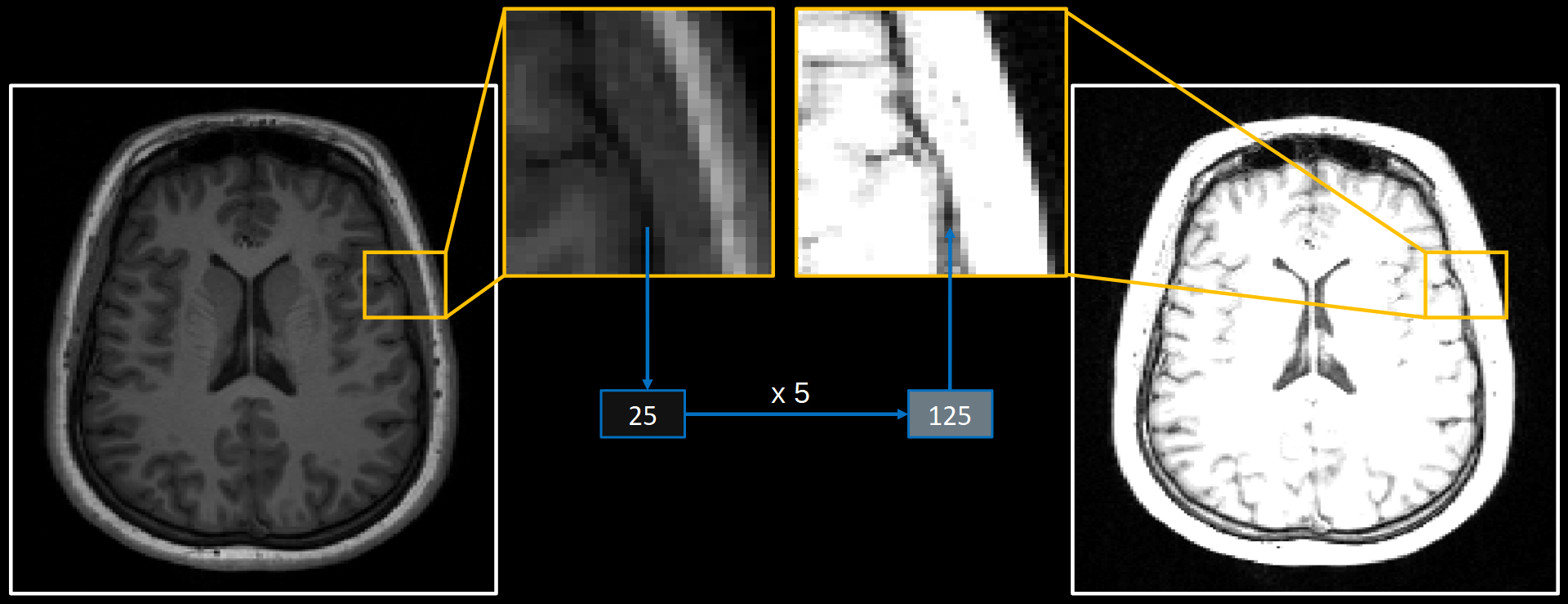 The term image processing refers to the use of certain mathematical operations to enhance, manipulate or extract useful information from an image. This includes operations designed to change how the image appears, as well as operations designed to change the properties of the signal that underlies the image. As an example, if we were to take every voxel in the image and multiply their value by 5, we would get an image that would appear brighter than the original image when using the same colourmap, as shown in Fig. 1.